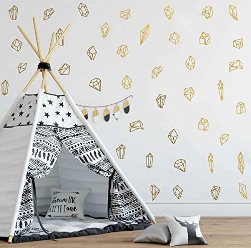 50 pcs Geometric Shapes & Gems Wall Stickers Home Decor Vinyl Decals for Kids Room D999 (Gold)