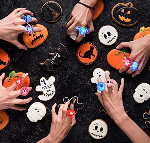 50 PCS Halloween Party Favors Halloween LED Light Up Rings Halloween Party supplies for Kids Adults Halloween Treats Non Candy Goodie Bag Fillers