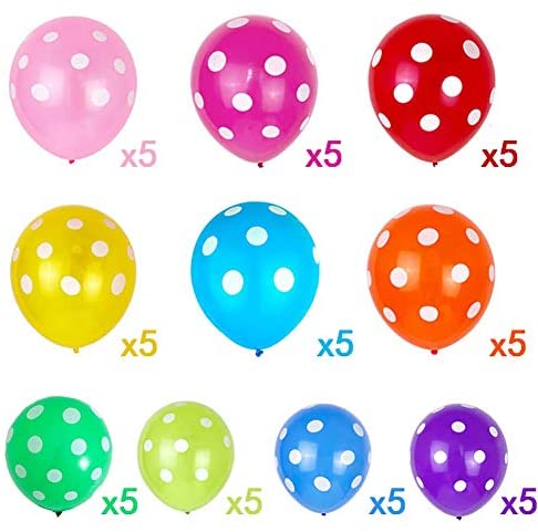 50 PCS Rainbow Polka Dot Balloons Kit – 12 Inch(30.48cm) MultiColor Polka Dot Latex Balloons for Happy Birthday Baby Shower Wedding Christmas Casino Party Decorations