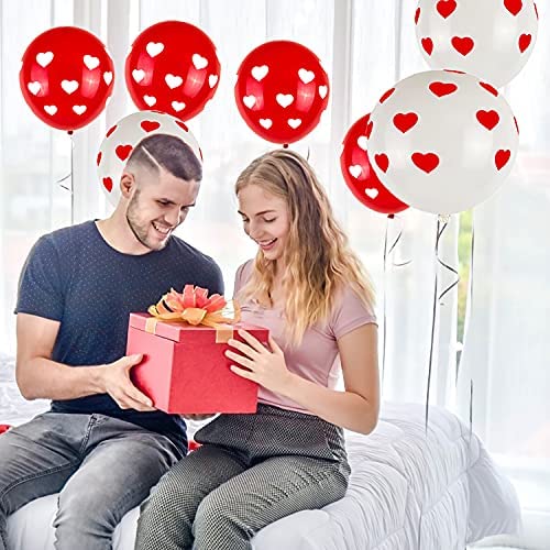 50 PCS Red and White Latex Balloons 12 Inch Heart Print Balloons Kit Party Balloons for Wedding,Mothers Day, Valentines Day, Anniversary, Proposal, Confession, Baby Shower, Birthday Party Decor