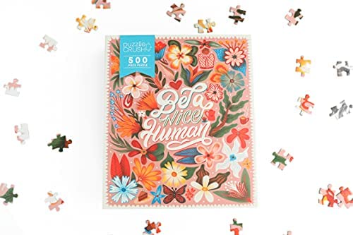 500 Piece Puzzle: This beautiful, 500-piece puzzle with the lettered quote, Be a Nice Human, is sure to entertain all puzzlers, from older kids through adulthood. The art and piece-count make for a challenging yet leisurely puzzling experience that will keep your mind and hands busy for hours. Inside the box, find the precisely cut puzzle pieces and a beautiful reference picture. Dazzling Artwork: This puzzle is based on artist Macarena Chomiks lovely hand lettered painting bursting with vibrant flowers and butterflies. The charming pink background sets a beautiful stage for the rich turquoise, red, blue, and orange colors. Screen-free Entertainment: Put your hands and mind to work while enjoying this puzzle. Puzzling is a great way to reduce stress, support brain activity, and have some fun without relying on TV or video games. Makes a Great Gift: Children and adults alike will be thrilled to receive this puzzle during a birthday or holiday. Or gather the family together to work on the puzzle as a team during the next game night.