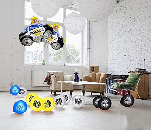 Package Including – 48 pieces police latex balloons and 2 pieces police car foil Balloons. Measurement – Each latex balloons measures 12 high and each police car foil balloon measures 29 inches in diameter. Material – police latex balloons made from natural latex rubber,and printed with eco-friendly inks. Police car foil balloons is made of aluminum foil.Strings/Ribbon are NOT included. Wide usages -Suitable for police theme party, wedding birthday party, childrens birthday party, holiday, celebration, etc. Police car can attract the attention of children and create a completely joyful atmosphere.