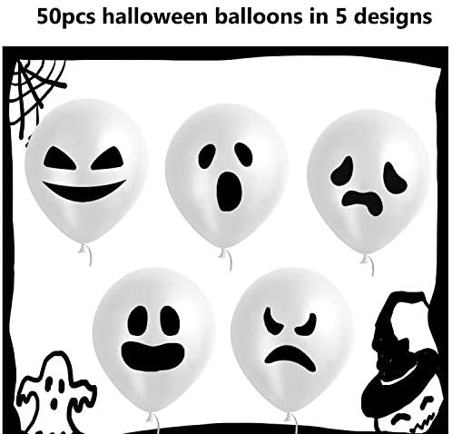 50PCS Halloween Ghost Latex Balloons – Halloween Party Supplies Favors Halloween Haunted House Cosplay Theme Party Decoration Skeleton Demon Balloon