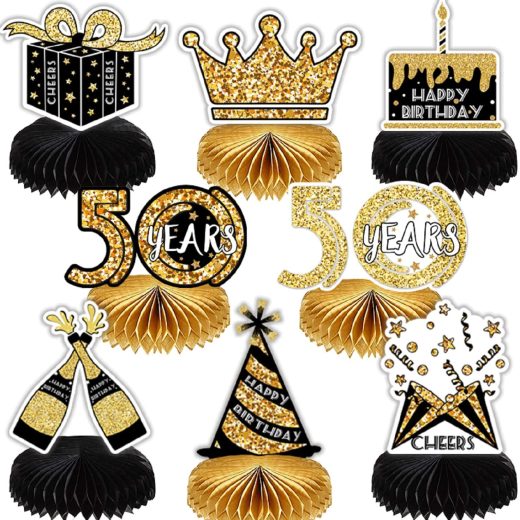 50th Birthday Party Supplies- You will get 8Pcs non-duplicate birthday honeycomb centerpieces. The creative and novelty table decorations will make…