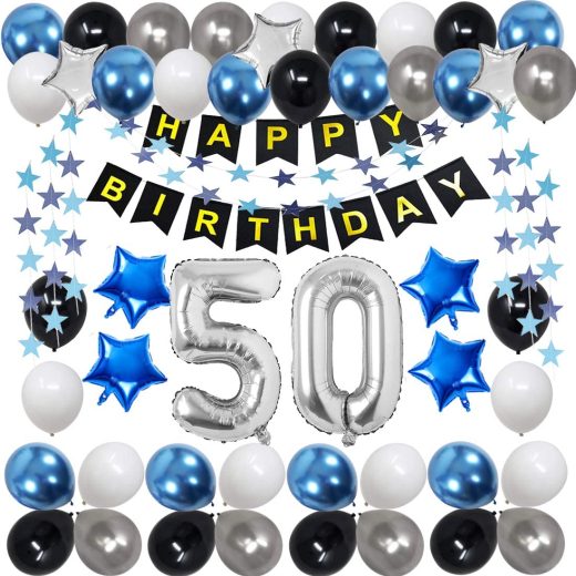 Be the first to review “50th Birthday Decorations for Men Women Boy Girl,Blue Black Birthday Party Supplies with 50 Silver Number Balloon Happy Birthday Banner for 50th and 5th Birthday Party” Cancel reply