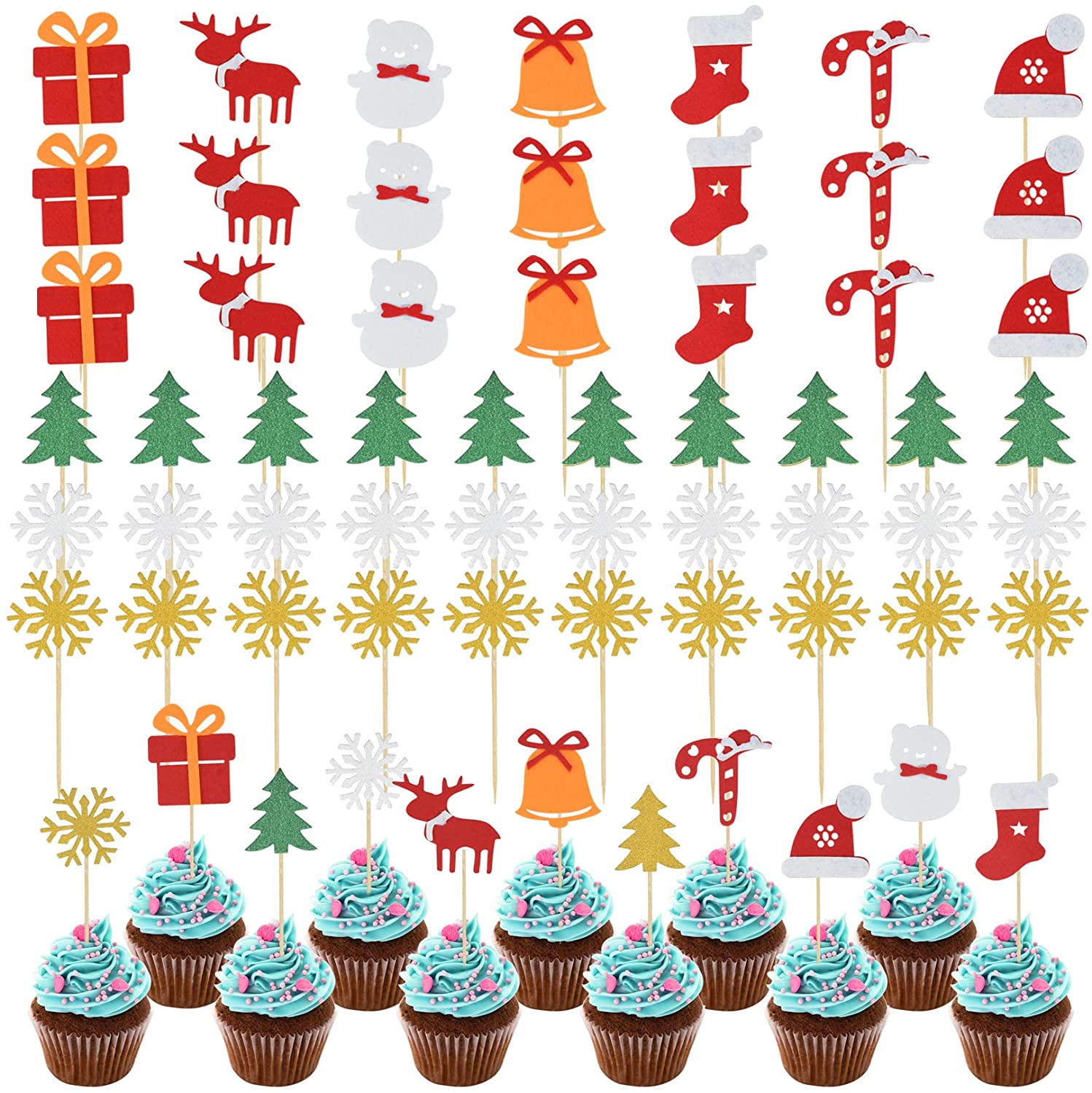 51pcs Christmas Cupcake Toppers Cake Toppers Picks Christmas Tree Snowman Snowflake Sock Hat Bell Elk for Xmas Party Favor Wedding Decoration Supplies