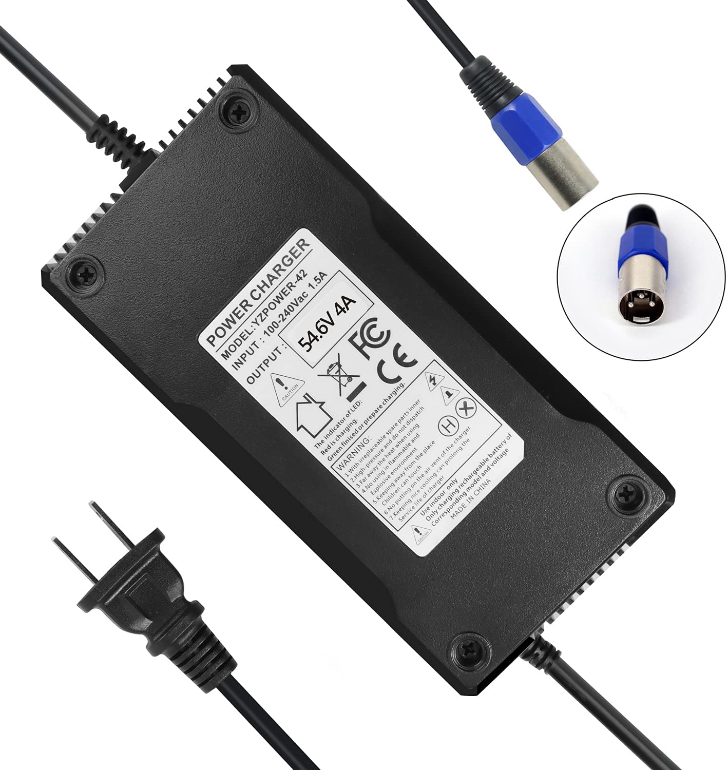 54.6V 4A Power Adapter for Electric Bike Mobility Scooter 48V Lithium Battery Charger 3-Pin XLR Connector