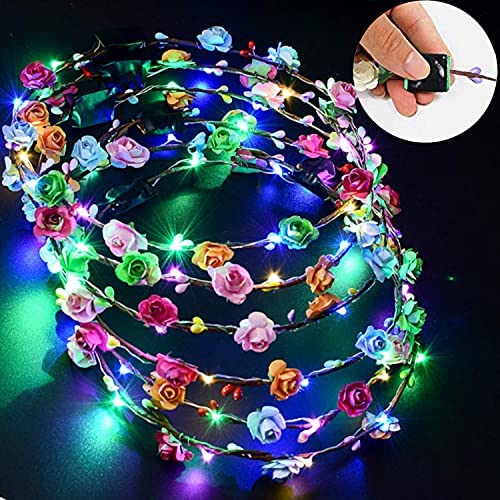 Package include—-50 Glow Stick, 4 LED Flower Crown and 50 Connectors. Ultra Bright LED Party Supplies Package, will provide the ultimate glow party experience. Ultra Bright and Long Lasting—-Glow sticks are made from high quality materials to ensure up to 7-10 hours of glowing light. The LED flower wreath is built in high capacity battery can use all day. So you could enjoy your party all night without worrying they would fade away. Multiple Flash Modes—-LED garland has 3 flash modes: normal, slow flash, fast flash. Just press the button to use. These light up toys keep the party alive all night. Safe and Comfortable Material—-Glow Stick sturdy material makes them harder to snap so they dont easily break and leak. Colorful wreath headbands are use vine wire frame,Insulation Tape and LED Light. Have excellent handmade materials and exquisite workmanship, durable and not easy to fade is more beautiful than real flower. Safe and comfortable to wear,Not allergic. Adjustable size(7.4inch)headbands fit from age 5 and up including adult. Use Occasion—-50 8 glow sticks and 50 connectors to make glow bracelets, glow necklaces. Floral Crown with simply, sweet, romantic, elegant. Use for Christmas, New Years Day, Wedding, Party,Holiday,Festival,new Year,Photography etc.