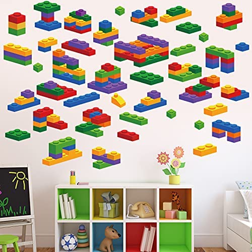 54 Pieces Building Blocks Wall Decals Kids Wall Stickers 5 Colors Bricks Wall Decal Peel and Stick Waterproof Brick Decals for Baby Boys Girls Nursery Bedroom Classroom Living Room Decorations