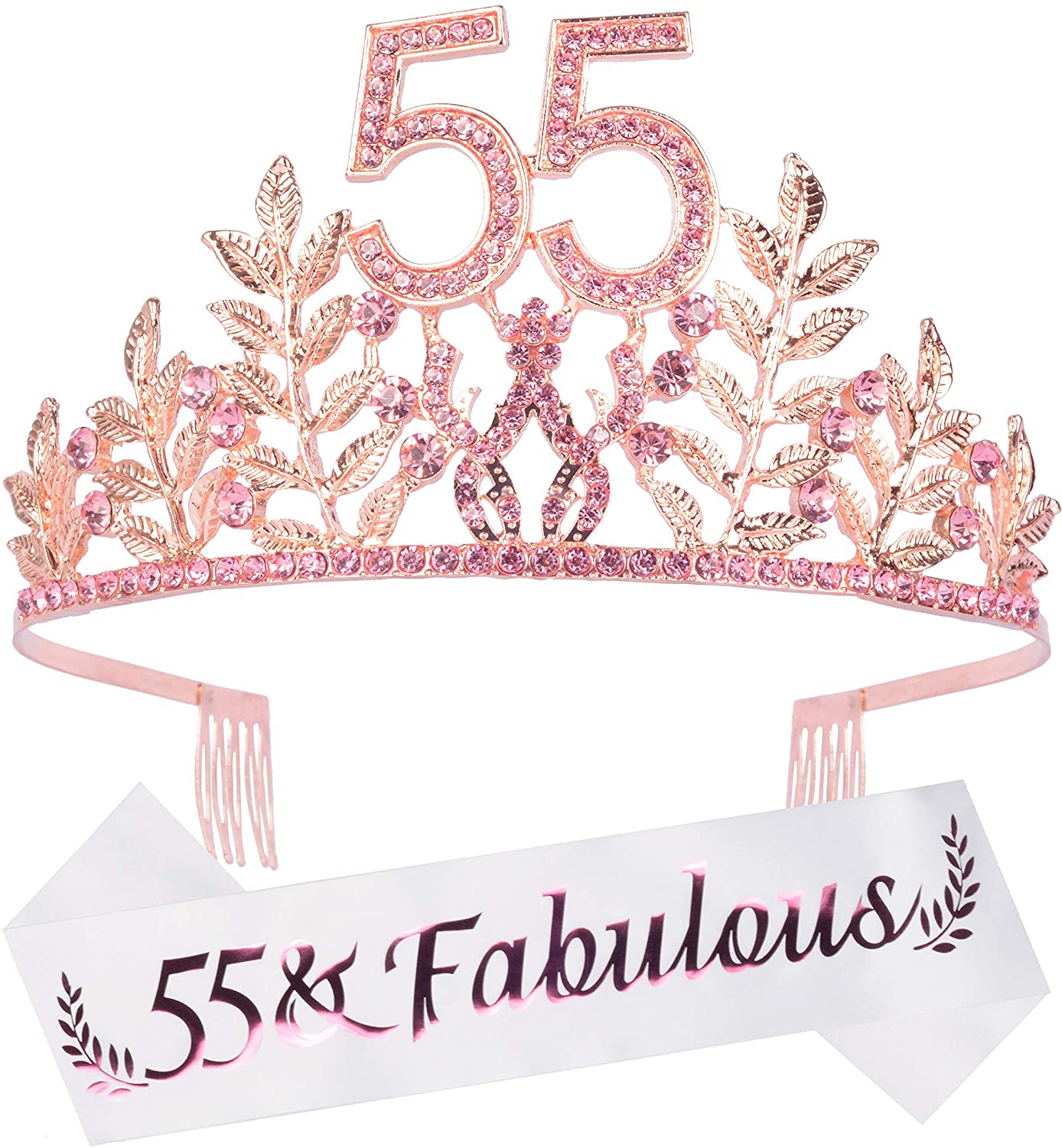 55th Birthday Gifts for Women, 55th Birthday Tiara and Sash, 55 Fabulous Sash and Crystal Tiara, 55th Birthday Decorations for Women, 55th Birthday Party Supplies, Happy 55th Birthday