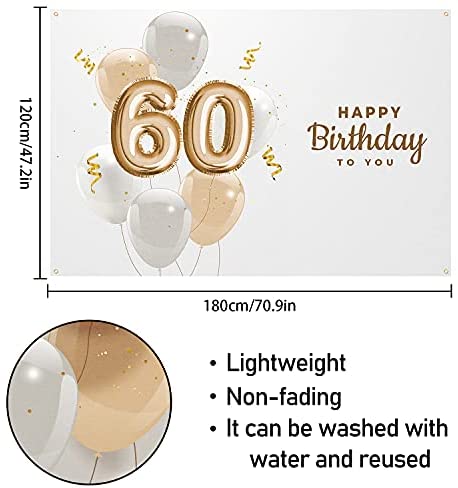 5665 Happy 60th Birthday to You Backdrop Banner Decor White u2013 Glitter Spots Balloons Happy 60 Years Old Birthday Party Theme Decorations for Girls Boys Supplies