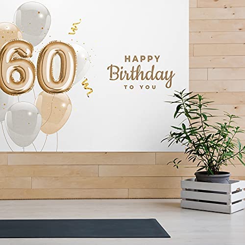 5665 Happy 60th Birthday to You Backdrop Banner Decor White u2013 Glitter Spots Balloons Happy 60 Years Old Birthday Party Theme Decorations for G…