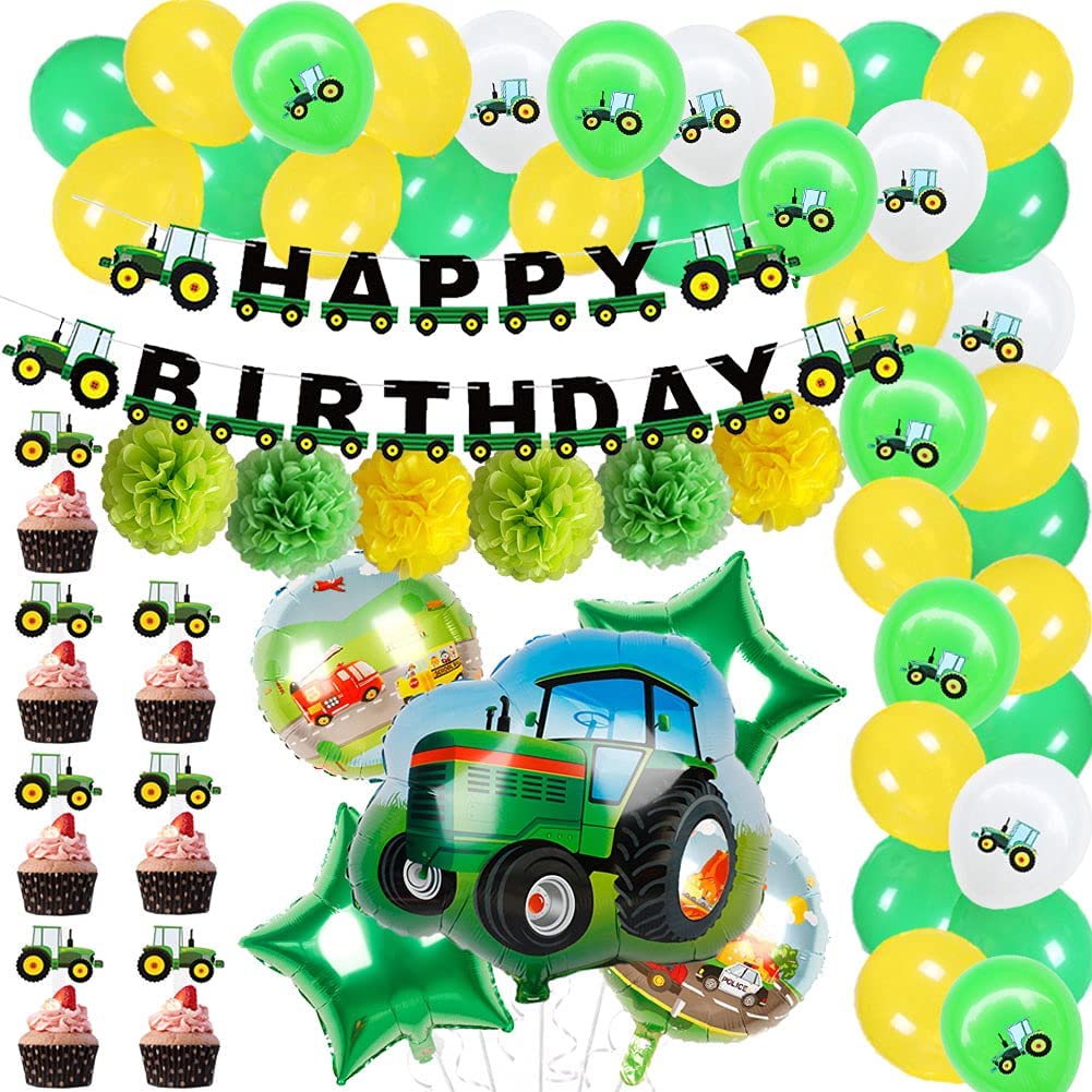 59 Pieces Farm Tractor Theme Party Decorations Tractor Happy Birthday Banner Garland Cupcake Toppers Balloons Green Tractor Party Supplies for Girls Boys Kids