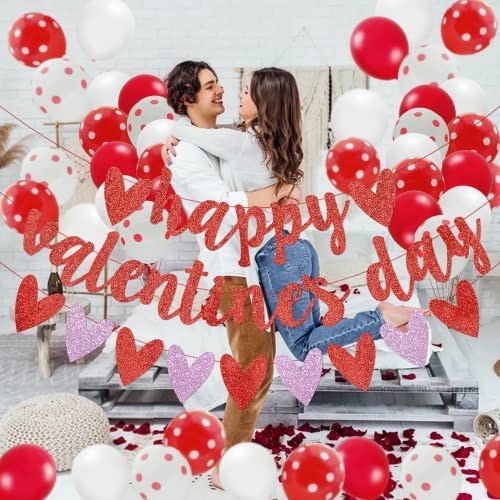 The Valentines Day DecorPackage include 2 pcs glittery happy valentines day banner 1 pcs red heart glittery banner garland, 1 pcs happy valentines …
