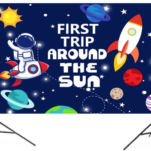 5ft*3ft Space Theme 1st Birthday Party Photo Backdrop,First Trip Around The Sun Birthday Party Photo Backdrop,Space Theme 1st Birthday Decorations….
