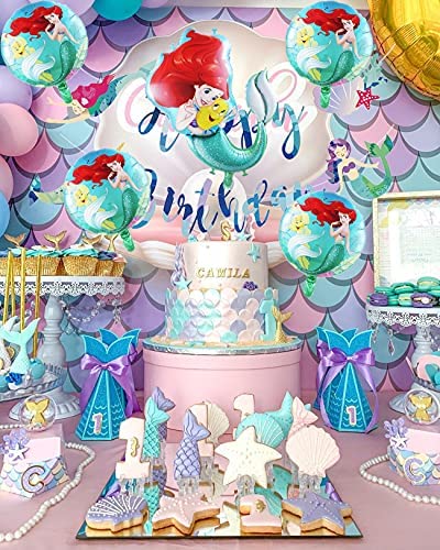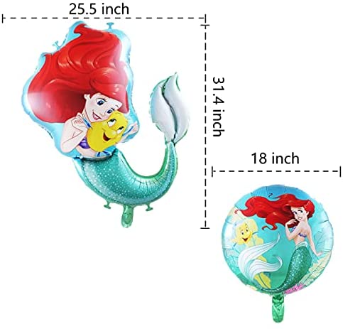 5Pcs Ariel Mermaid Princess Foil Balloons,Little Mermaid Theme Birthday Party Decorations for Girls