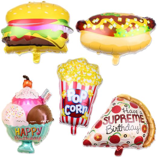 Package Including:5pcs calorie food foil balloons,burger balloon, hot dog balloon,pizza balloon,popcorn balloon,ice cream balloon,,enough quantity …