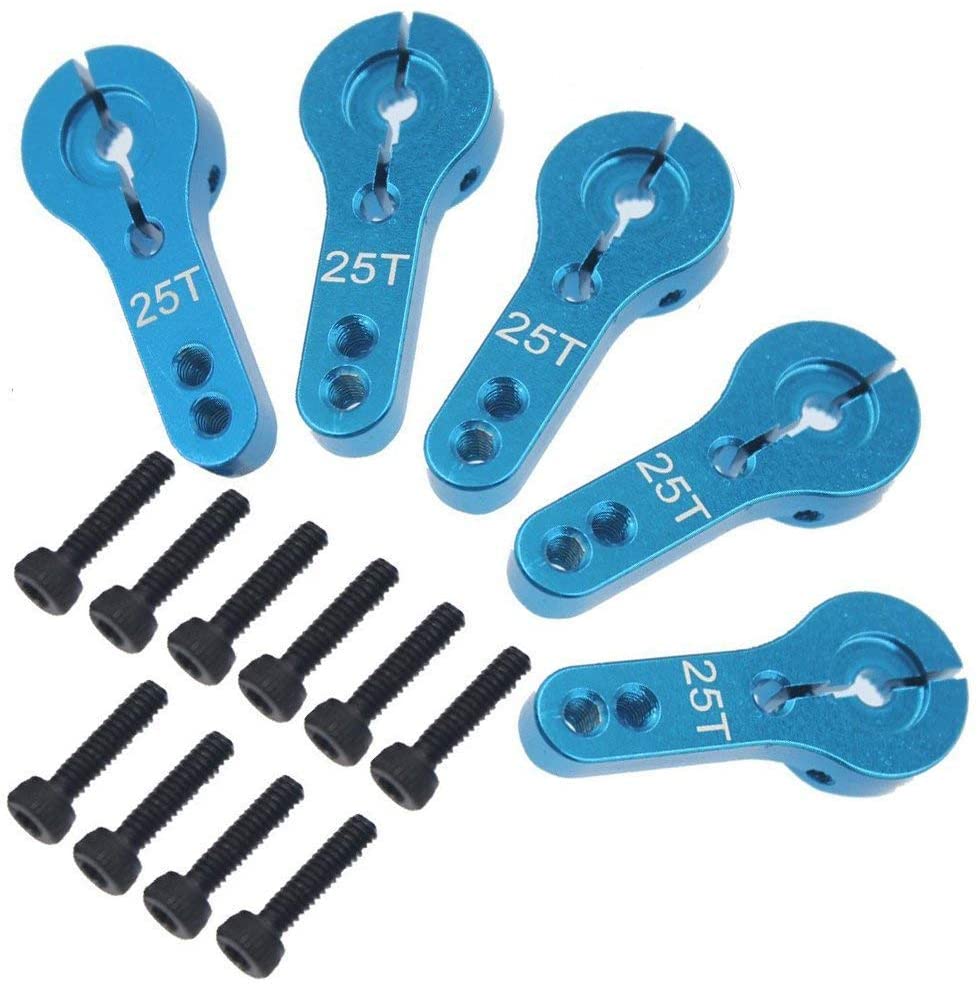 Compatible with Futaba Savox Power HD HSP MG995 MG996 Servos, Suitable for 1/10 1/8 RC Car Truck and other RC Models Boat FPV.Compatible with Traxxas Axial Tamiya HPI HSP Wltoys Axial SCX10 1/10 RC Car Crawler Car Made of aluminum alloy,CNC machining makes it precise in size and stable in performance. 25 Thread Spline & M2.5 thread to adjustable. Easy and convenient to install. Material: Aluminum Alloy Total Length:37mm/1.46; Distance from Hole Center to Hole Center:15mm, 20mm, 25mm, 30mm Thread: M2.5 Color:Red/Blue(Optional) Quantity: 5Pcs Package Includes: 5 x 25T Long Servo Horns