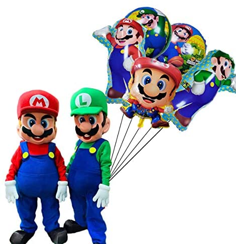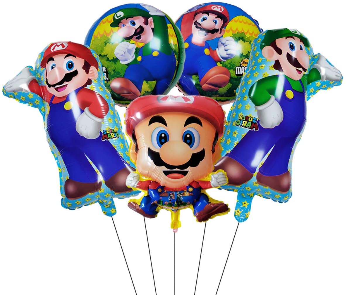 5pcs Super Mario Brothers aluminum foil balloons, Super Mario Brothers theme party, kids birthday party decoration supplies.