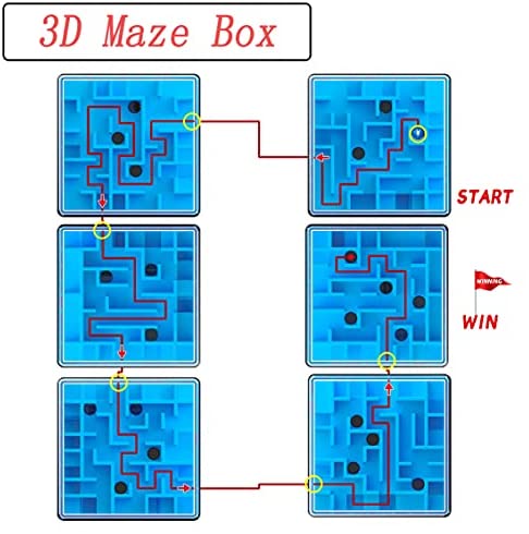 [6 IN 1 Intellectual Toy Set]: Our brain teaser toys includes 6 different funny and brain puzzle toys. 3x3x3 Speed Cube, 3D Maze Magic Box, Rainbow…