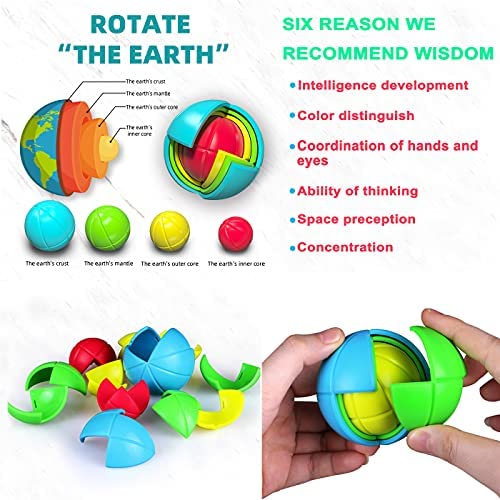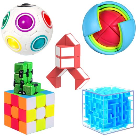 [6 IN 1 Intellectual Toy Set]: Our brain teaser toys includes 6 different funny and brain puzzle toys. 3x3x3 Speed Cube, 3D Maze Magic Box, Rainbow Puzzle Ball, Wisdom Ball Puzzle, Snake Ruler, Infinity Cube. Different toys with different challenges, suitable for beginner and professional player. [High Quality Material]: This brain teaser puzzle set is made from eco-friendly ABS material and long lasting non-fading. Smooth corners, easy to clean, durable and easy to carry. Its suitable for children and adults to play. Enjoy your funny time. [Easy turning and Smooth]: 3x3x3 speed cube is improved anti-pop technology, structure for extremely fast and smooth cornering. Snake Ruler is excellent stability and tension adjustable. Infinity cube is turning smooth, can play by one hand in every time. [Different challenges]: This brain teaser puzzle cube set contains 6 different puzzle toys, you can enjoy different funny. 3x3x3 speed cube turn smooth, 3D Maze Magic Box 6 faces represent the 6 levels of the game. Rainbow Puzzle Ball can move the color ball and match color. Snake Ruler can create many different shapes. Infinity Cube can play by one hand and play everywhere and any time. Relax your stress any time and anywhere. [Good game and best gif for kid]: This 3D puzzle cube bundle can brain help to exercise your childs thinking ability. The speed cube toys will never go out of style. This speed cube set also suit for adult who plays with friend, children. Perfect gift for all festivals, Birthday, Christmas, New Year & Children’s day, Easter, Halloween, Thanksgiving.