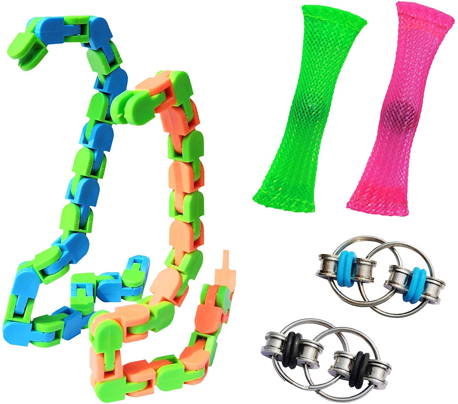 Specifications: Easy to use and carry It can help relieve pressure,improve attention,keep calm and can be used in many occasions or places,such as,classrooms,offices,bedrooms,shopping malls or airports Gifts for important festivals Warm Notice: Small parts,Not for children under 3yrs Package: Flippy Chain:2 Pieces Marble Mesh:2 Pieces Wacky Tracks:2 Pieces