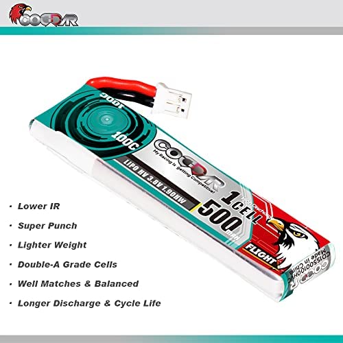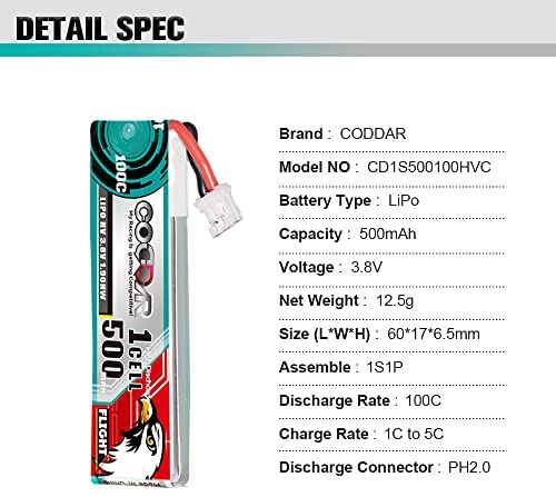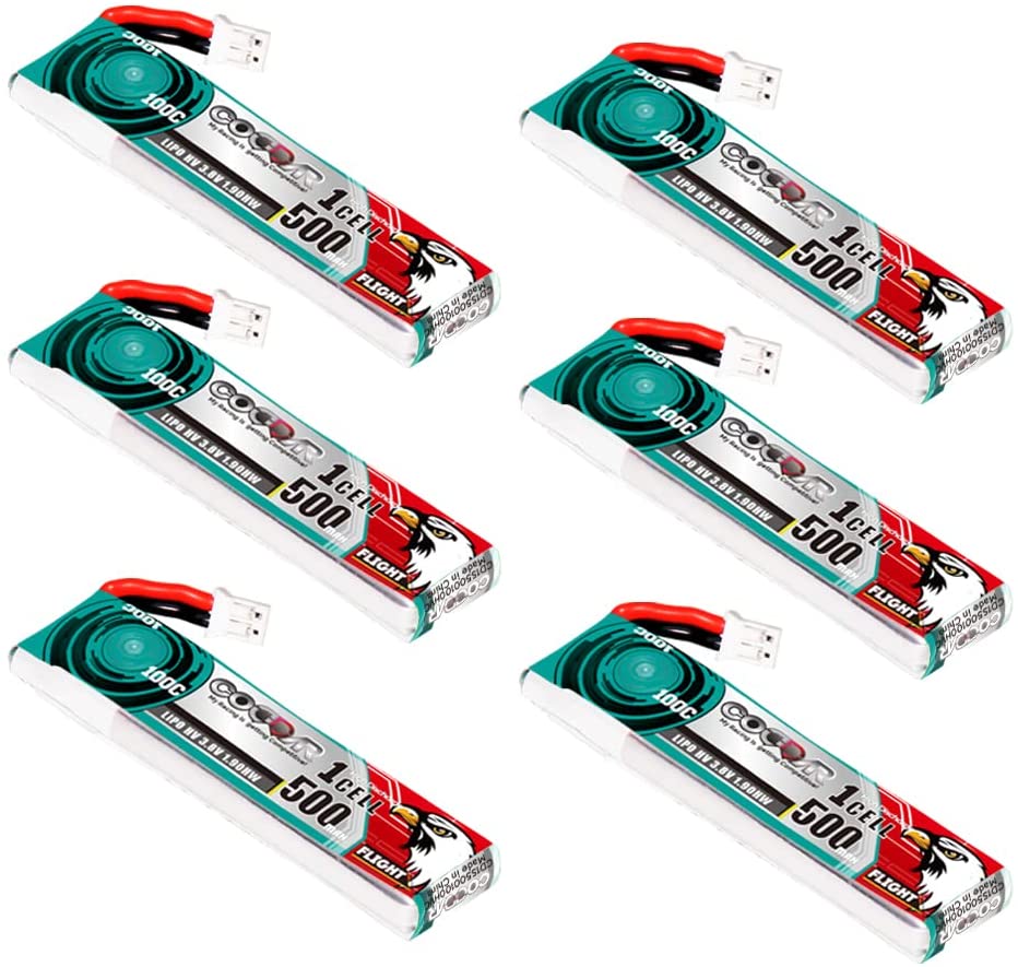 6 Packs 500mAh 1S 3.8V 100C HV LiPo Battery with JST-PH 2.0 Connector for EMAX Tinyhawk 2 EZ-Pilot E010 M80S Tiny7 Inductrix FPV Plus Beta75S Beginner Indoor Micro FPV Racing Drone