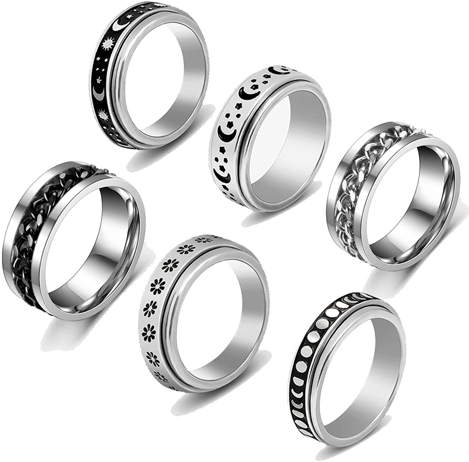 6 PCS Anxiety Ring for Women Spinner Rings for Anxiety Stainless Steel Fidget Ring with Beads Valentines Day Gifts for Men and Women