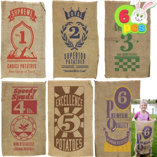 Easter Race Game Playset includes 6 Pieces Jumping Burlap Potato Sacks Bags. Superior Quality. High Quality. Size is approximately 40” x 24”. Super Value Pack for Easter Games. Perfect for Easter Theme Decoration, School Classroom Supply, Easter Party Favor Supplies, Easter Basket Stuffers Fillers, Easter Goodie/ Goody, Easter Toy and Prizes, Teacher Treats, Easter Gifts and more! Enjoy Burlap Potato Sacks Race Bags for Hours of fun at Easter Egg Hunting Party! CHILD SAFETY: Meet US Safety Standard. Safety Test Approved. Non-Toxic. Superior Quality.