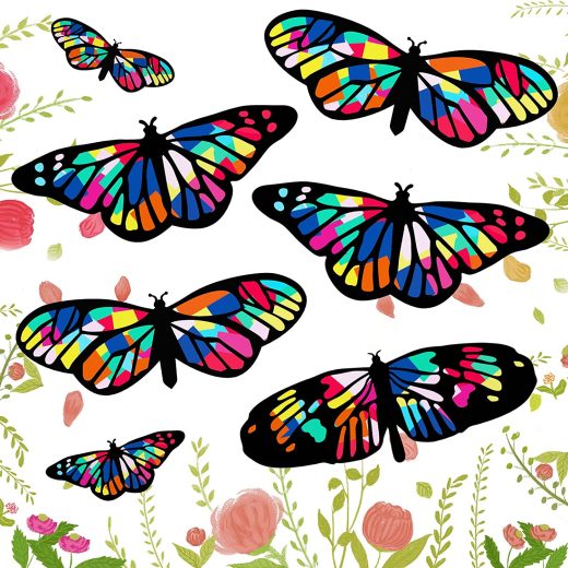 6 Pieces Large Butterfly Suncatcher Kit for Kids Butterfly Party Decorations, DIY Stain Glass Kits Effect Paper Crafts (6 Cutouts, 16 Tissue Papers) for Window Art Classroom Art Crafts Birthday Gifts