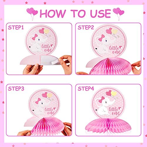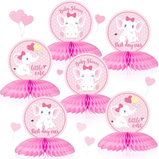 6 Pieces Pink Elephant Honeycomb Centerpieces Its A Girl Baby Shower Centerpiece Table Decorations Pink Little Peanut Cutouts for Baby Shower Birthday Elephant Theme Party Supplies