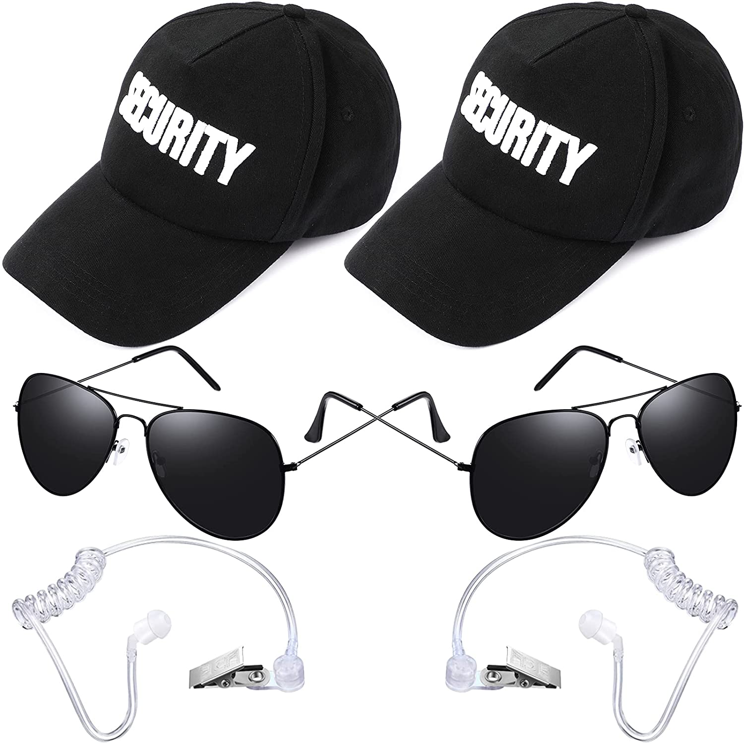 6 Pieces Playing Cosplay Toy Secret Service Dress up Includes Earpiece Earplugs Acoustic Tube Headset Sunglasses and Black Security Hat for Teens Boys Playing Cosplay Costume Party Accessory Kit