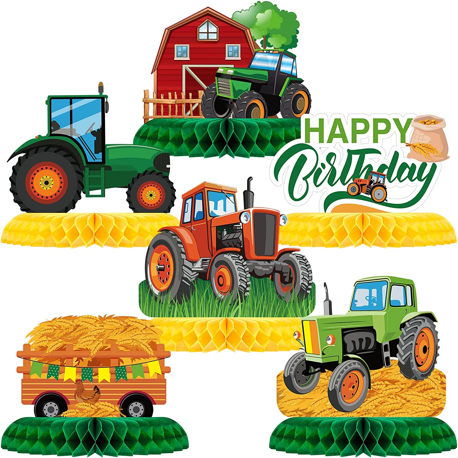 6 Pieces Tractor Time Honeycomb Table Centerpiece Tractor Birthday Party Supplies Tractor Party Decorations Paper Tractor Honeycomb Centerpieces Table Toppers for Baby Shower Party Supplies, 6 Designs