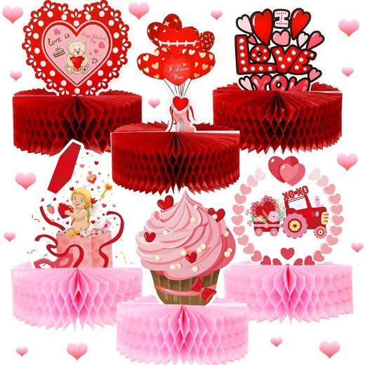 6 Pieces Valentines Day Honeycomb Centerpieces for Valentines Wedding Party 3D Table Decor Heart Cakes Balls Paper Table Centerpiece Signs Valentines Supplies Decorations