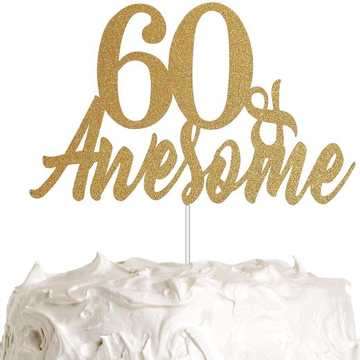 60 Awesome Cake Topper, 60th Birthday Cake Topper, 60th Anniversary Cake Topper, Happy Birthday/Anniversary Party Decoration with Premium Gold Glitter