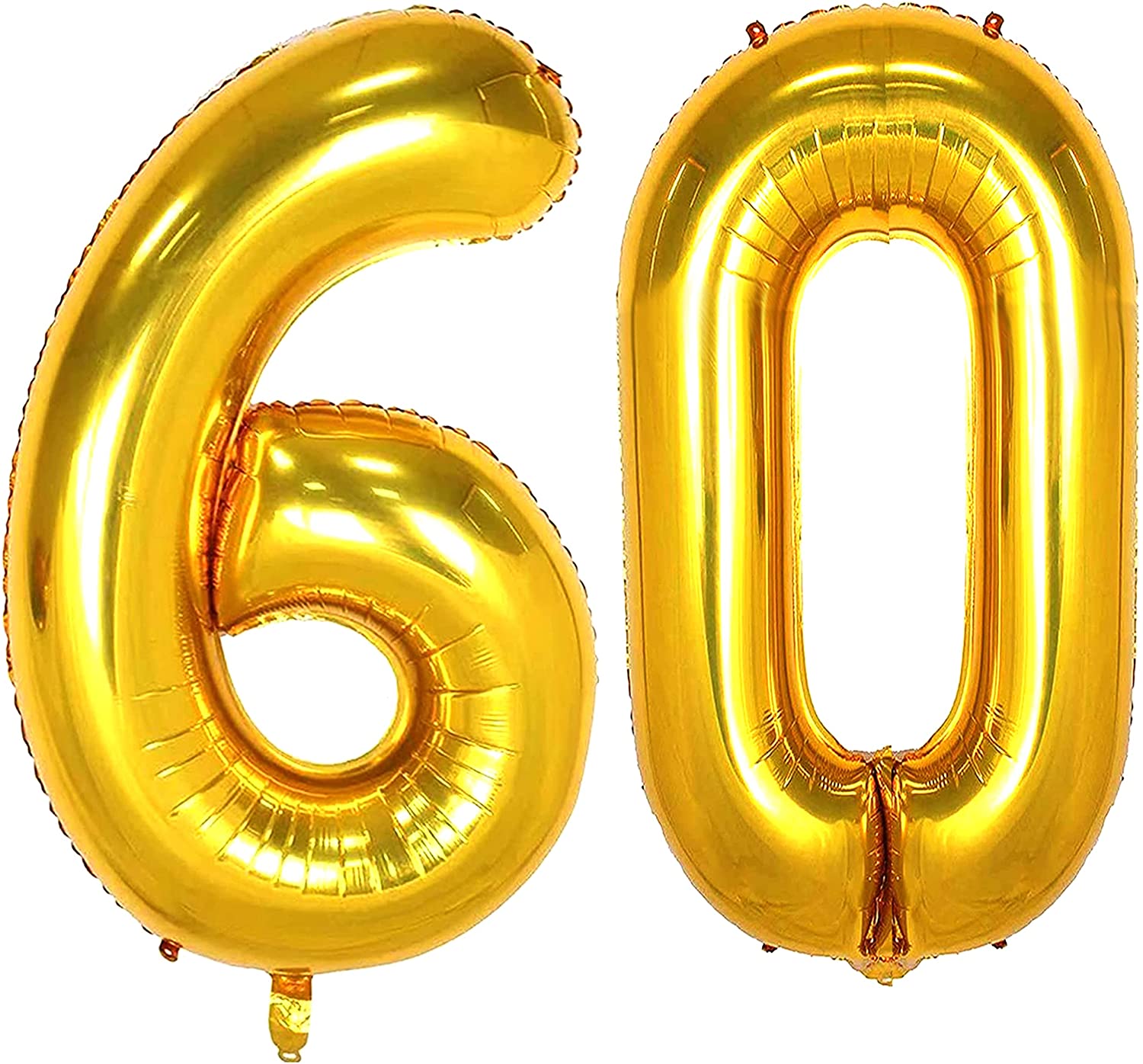 PERFECT SUITABLE FOR: The bright gold 60 number foil Mylar balloons are the best choice for:60th birthday party,wedding,graduation anniversary,holiday celebration,business,big events,school class party,Halloween,Christmas and New Year party decoration.You can stick the gold 60 number balloons on the wall,window or door,you can inflate with both helium or air,you can even place them on the bed, floor or table,provide your party or home a good display. PACKAGE CONTENTS: 2 Pieces 40 Inch gold number Balloons:No.6 gold number Balloon + No.0 gold number Balloon + 1 straw. CHOOSE THEM: The gold number balloon is made of high-quality aluminum film that empty balloon is 42 inch,after filled with helium or air,its 40 inch.Please use the straw in the balloon set to inflate it slowly. TIPS FOR NUMBER BALLOONS: Due to the thermal expansion and contraction characteristics of aluminum foil,please avoid filling more than 90% of air or helium.If it is over-inflated,it can easily cause the balloon to explode at high temperatures.Please avoid leaving the balloons in an outdoor high temperature environment for a long time.If the ambient temperature is too low,it will also cause the balloon to deflate.At this point,you can use the straw to inflate again. SERVICE: We do our best to provide customers with better products. If you have any questions, we promise to give you a satisfactory answer without any delay.