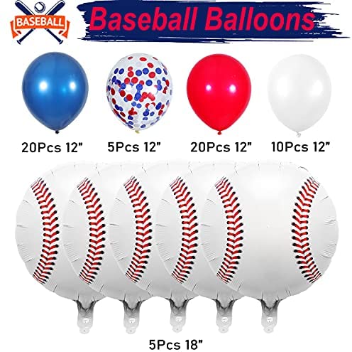 60 Pcs Baseball Theme Decoration, Navy Blue Red White Confetti Balloons with Baseball Foil Balloons for Baseball Theme Birthday Baby Shower Decoration
