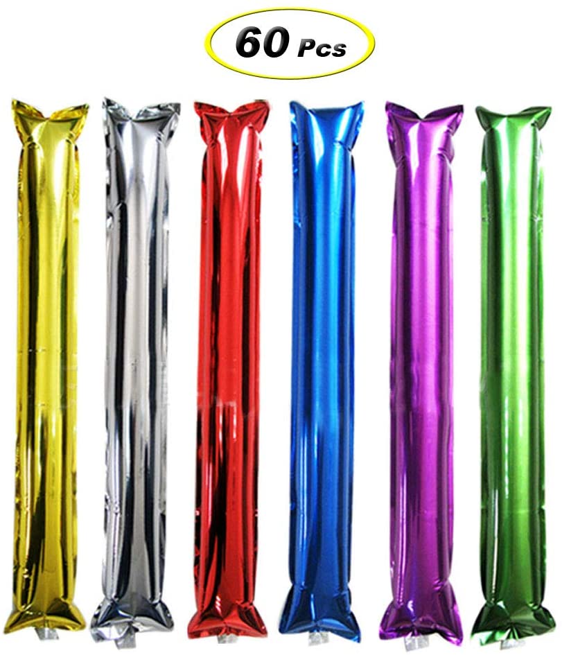 60 Pcs Foil Bam Bam Thunder Sticks, Long Balloon Inflatable Cheer Sticks Inflating Rods in for Birthday Party