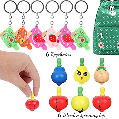 60 PCS Fruit Party Favors Birthday Supplies Set- Tutti Frutti Necklace Ring Keychain Pinwheel Wooden Spinning Tops Toys Gift Bag Summer Hawaii Luau Party Gift Goodie Bags Fillers for Girls Boys