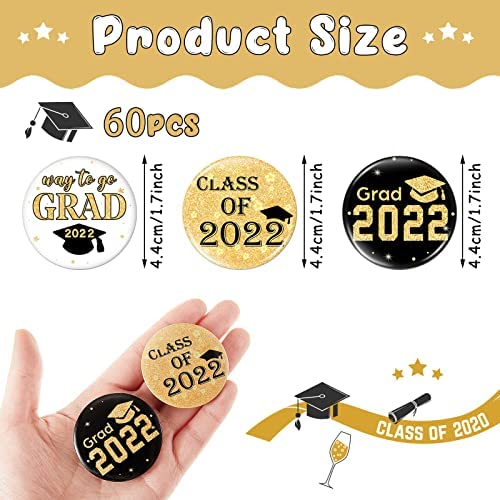 60 Pieces Graduation Button Pins Graduation Party Supplies 2022 Class of 2022 Graduation Pins Congrats Badges Graduate Button Lapel Pin for Party Favor, Decorations