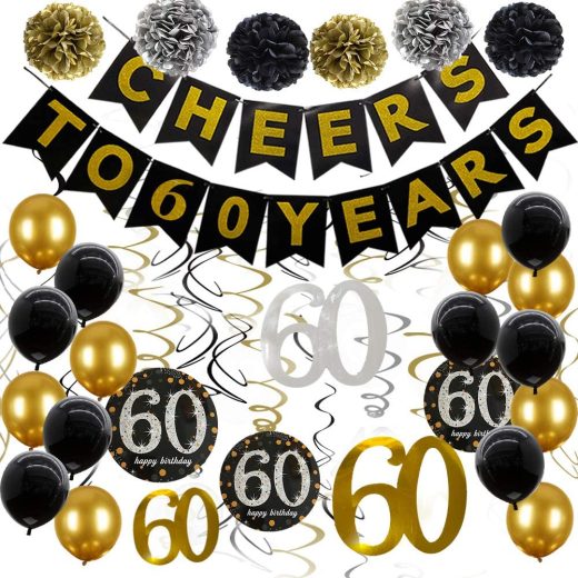 Be the first to review “60th Birthday Decorations for Men Women 60th Birthday Banner Cheers to 60 Years with 60th Hanging Swirls Black and Gold 60th Party Decorations” Cancel reply