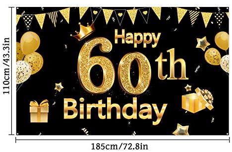 60th Birthday Party Decoration, Extra Large Black Gold Sign Poster 60th Birthday Party Supplies, 60th Anniversary Backdrop Banner Photo Booth Backdrop Background Banner, 72.8 x 43.3 Inch