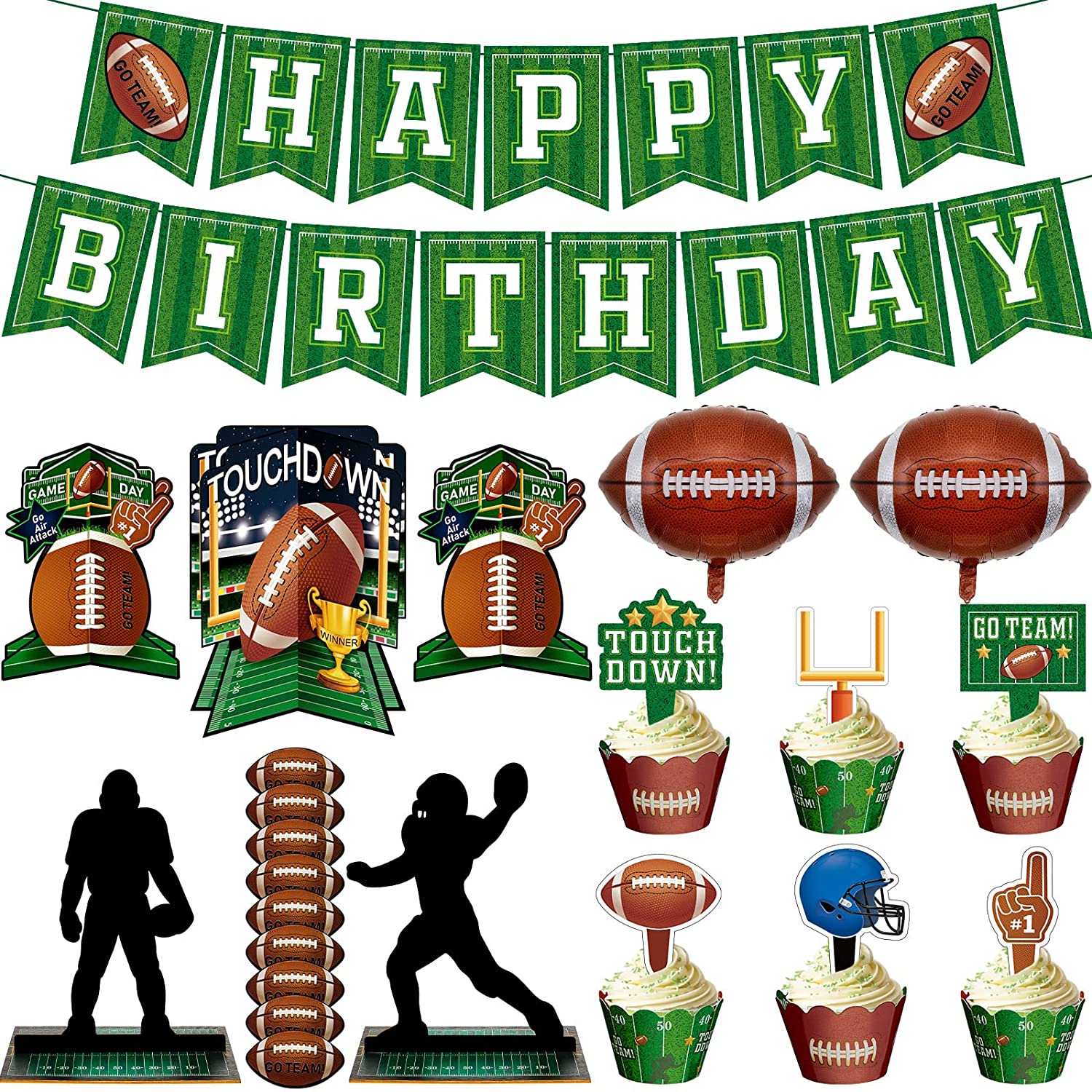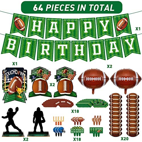 64 Pieces Football Party Decorations Football Birthday Banner Football Birthday Party Decorations Football Table Centerpieces Football Cake Toppers Football Balloons for Sport Game Day Party Supplies