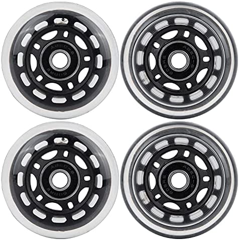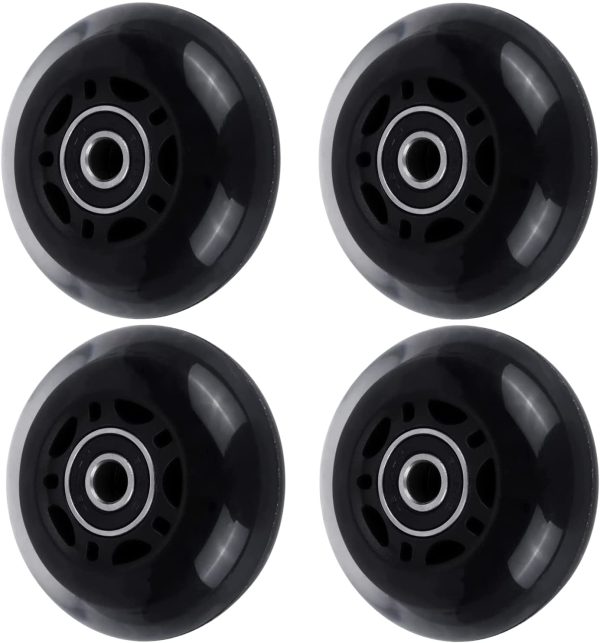 64mm Inline Skate Wheels 85a w/Bearings ABEC-9 for Rollerblade, Pelican Storm Case, Roller Board Bag, Carry-on Luggage Suitcase, Water Rower Seat, Steady Rest Wood Lathe, etc (4 Pack)