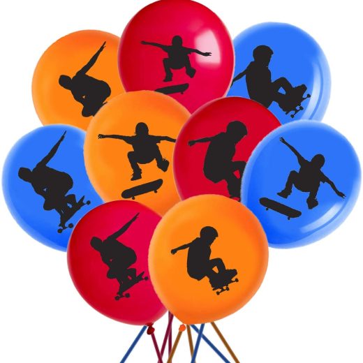 Package Including:64PCS skateboard party themed balloons in a pack,each pack has 3 colors of inflatable skateboard balloons, a total of 9 colors of skateboard balloons, enough to decorate your party Measurement:our skateboard balloon measures 12 inch after inflating Material:our skateboard balloons is made of latex,it can be filled with air or helium, but it is not recommended to fill it too full for easy explosion Wide usages:Suitable for skateboard theme party,birthday party, childrens birthday party,holiday,celebration,holiday party,baby shower anniversary party,graduation ceremonies, festivals and festival decorations add an active and joyful atmosphere to these scenes Skateboard theme party balloons can attract the attention of children and create a completely joyful atmosphere