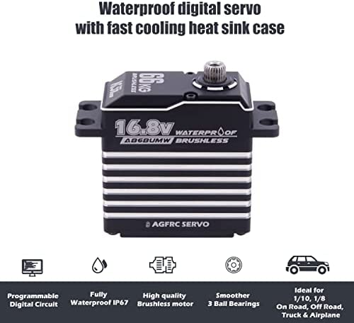 Upgrade & Programmable – This waterproof high torque servo is programmable by the AGF-SPV3 servo programmer(not include) to change the torque, speed, angle, inversion, etc.