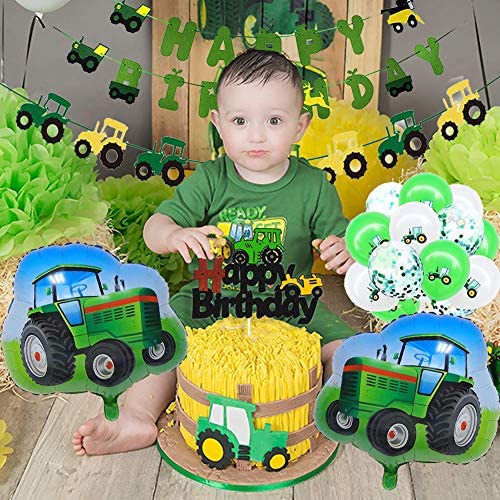 68Pcs Farm Tractor Theme Party Decorations include Tractor Happy Birthday Banner Tractor Garland Cupcake Toppers Balloons Pom Pom Flowers Green Tractor Party Supplies and Favors for Girls Boys Kids 1st 2nd 3rd 4th Birthday Decoration Note: The banner and the cupcake toppers NEED to be ASSEMBLED by yourself with the tool which was provided, but it is easy to set up. Tractor Birthday Party Supplies: This package set include 1pack Happy Birthday banner,1pack tractor garland, 20pcs 10-inch latex balloons and 10pcs 12-inch latex balloons, 1pc happy birthday cake topper, 5pcs tractor cupcake toppers, 2pcs big tractor foil balloons, 6pcs paper pom pom flowers, total 68pcs green tractor theme party supplies. Premium Quality Tractor Party Supplies: Tractor banner and garland is made from durable, sturdy felt. Use them year after year. It measures 3mm thick, your naughty kids are not able to accidentally destroy it. Vibrant Colors: The colors are childish and bright, tractor garland can be hung in room, candy table or you can individually stick them somewhere if you do not want to thread them! Great for cake smash photo prop. Caution: bunting and garland need to be assembled by yourself. Thanks to a big needle, its very easy to string. Widely Use: Its suitable for barnyard, tractor theme birthday party, lawnmower birthday decor, tractor themed party, tractor nursery theme party, tractor baby shower party, down on the farm, diggers dump trucks birthday party celebrations. Good for kids first birthday, 2nd 3rd 4th 5th 6th 7th 8th birthday banquet. Add to Cart now! Fast logistics and 100% refund service. If you have any questions with products, you can have a 100% refund.