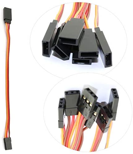 JR male plug and JR Female plug, compatible each other Servo extension cable, 3 pin female to male connector The adaptor plug includes one male, one female. Fit for Futaba and JR receiver. For RC Car, plane and helicopter servo connection or receiver connection. Cable Length: 150mm/ 5.9 inch Cable color: red, brown, orange Package includes: 6x 150mm Servo Extension Lead Wire Cable