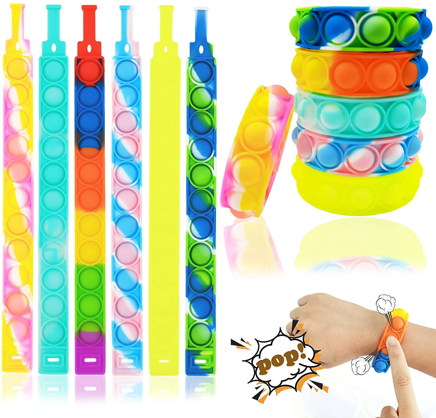 6pcs Fidget Toys Relax Bracelet Sensory Wristband Push Pop Bubble Fidget Colorful Silicone Toys for Kids Toddler Adults Anxiety ADHD Autism Stress Reduction Party Favors