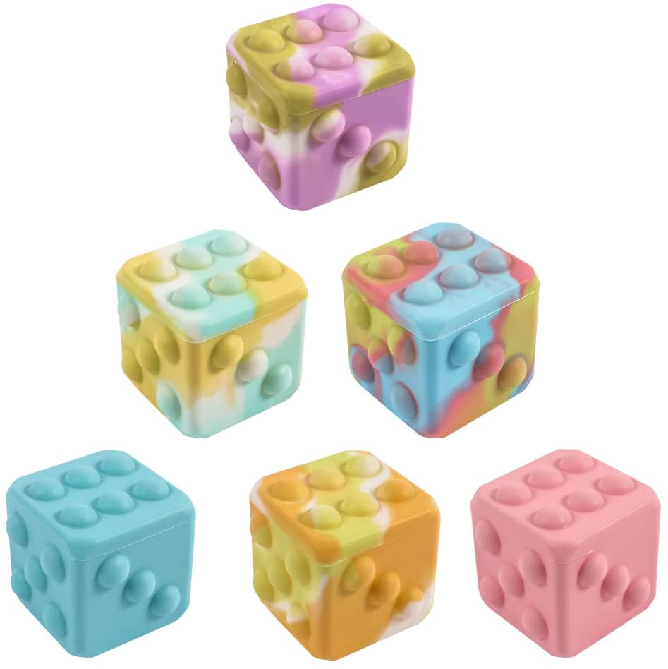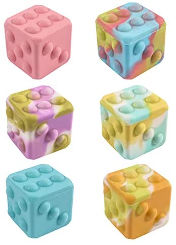 6pcs Push Fidget Toy, Rainbow Pop Stretchy Squeeze Silicone 3D Cube Party Favors, Stress Relief Elastic Dice Toys for Kids and Adults